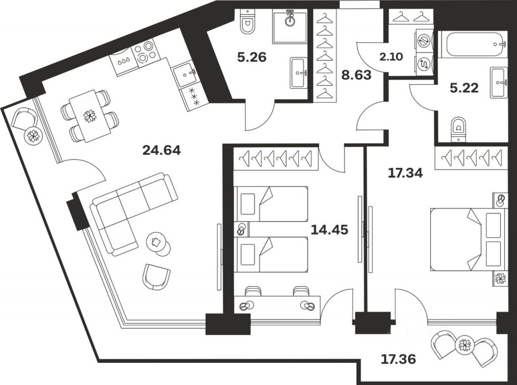 | 3-комнатные | от 89 м² | от 18,7 млн ₽ |
