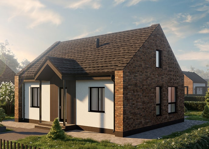 Компактный одноэтажный дом с двумя спальнями. В сердце дома просторная кухня-гостиная с выходом на террасу. В кухне-гостиной достаточно места для большого кухонного гарнитура, обеденного стола и отдельной ТВ-зоны. Вторая спальня может быть использована как кабинет. Особенный подарок — тёплая мансарда площадью 40 м2 с двумя полноценными окнами, может использоваться как две дополнительные спальные комнаты или как место для хранения.