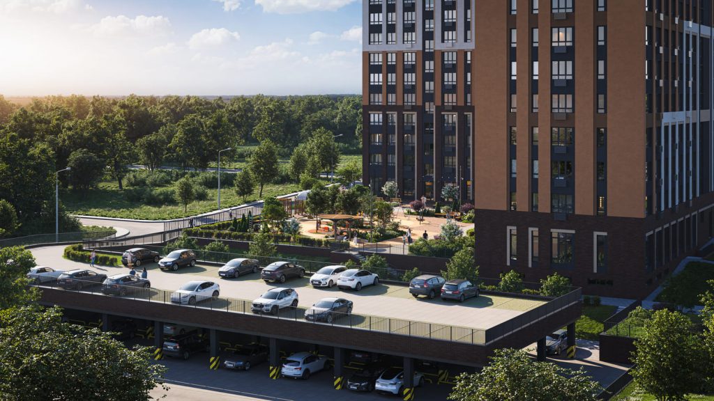 Для жителей комплекса предусмотрены парковочные места, что позволяет решить проблему хранения автомобилей.