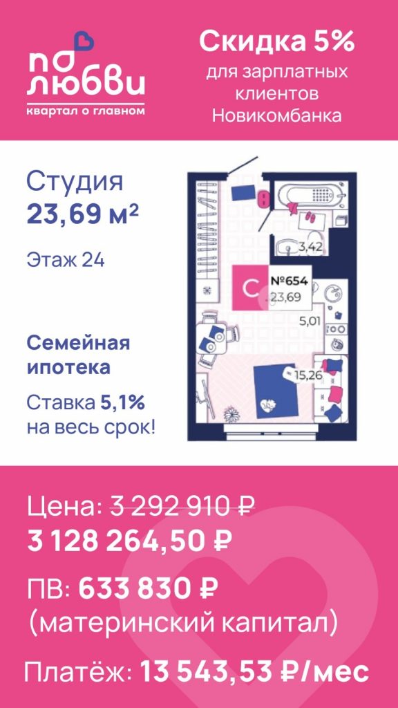 Купить квартиру в жилом комплексе по любви можно как с наличным так и безналичным платежом. Так же доступна льготная ипотека: военная, IT, семейная. Так же можно приобрести недвижимость с сертификатом и материнским капиталом. Эскроу счета. Субсидия от застройщика.