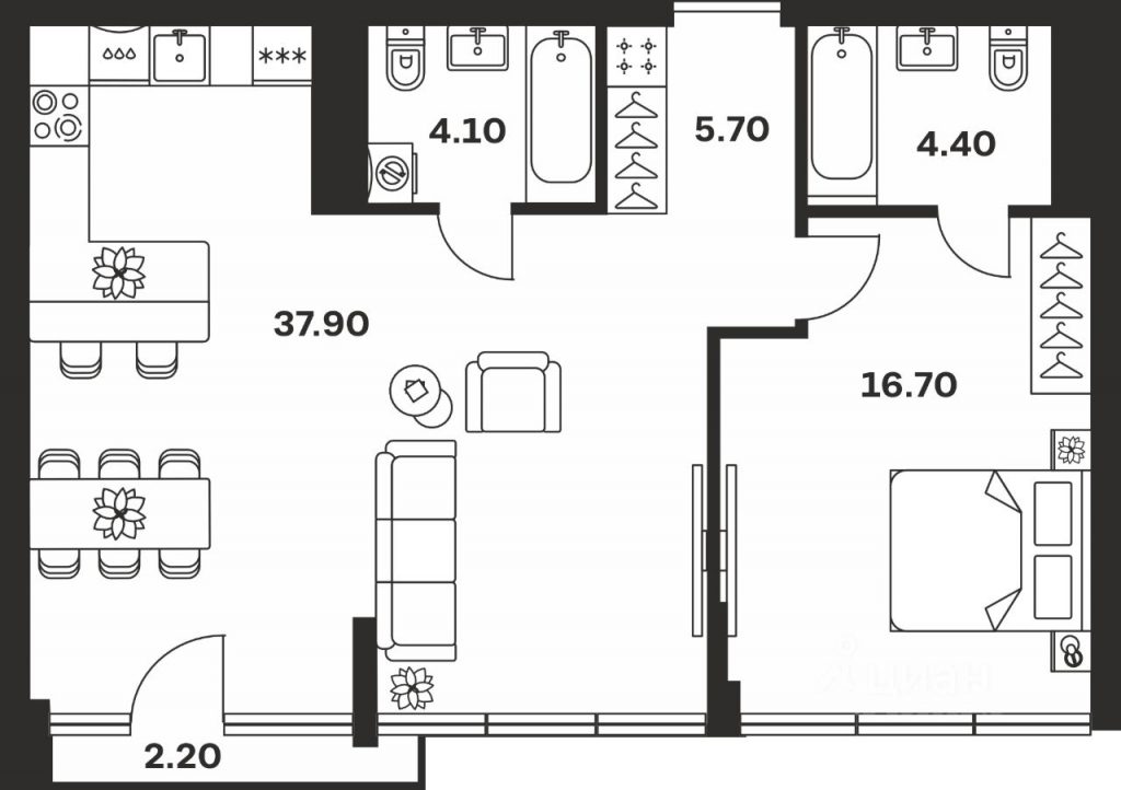 | Студии | от 41 м² | от ~12 млн ₽ |